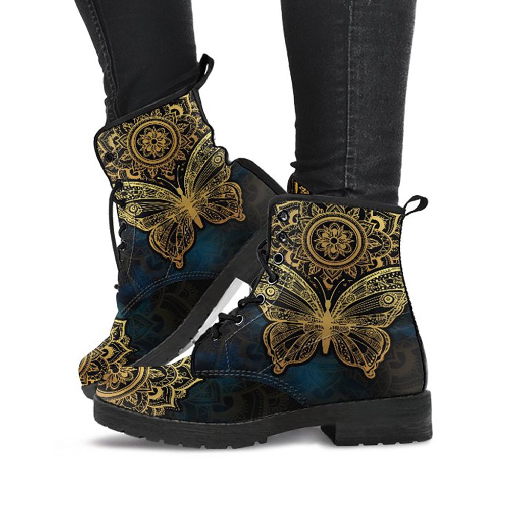 - Made of premium PU leather with a double-sided print and rounded toe construction.