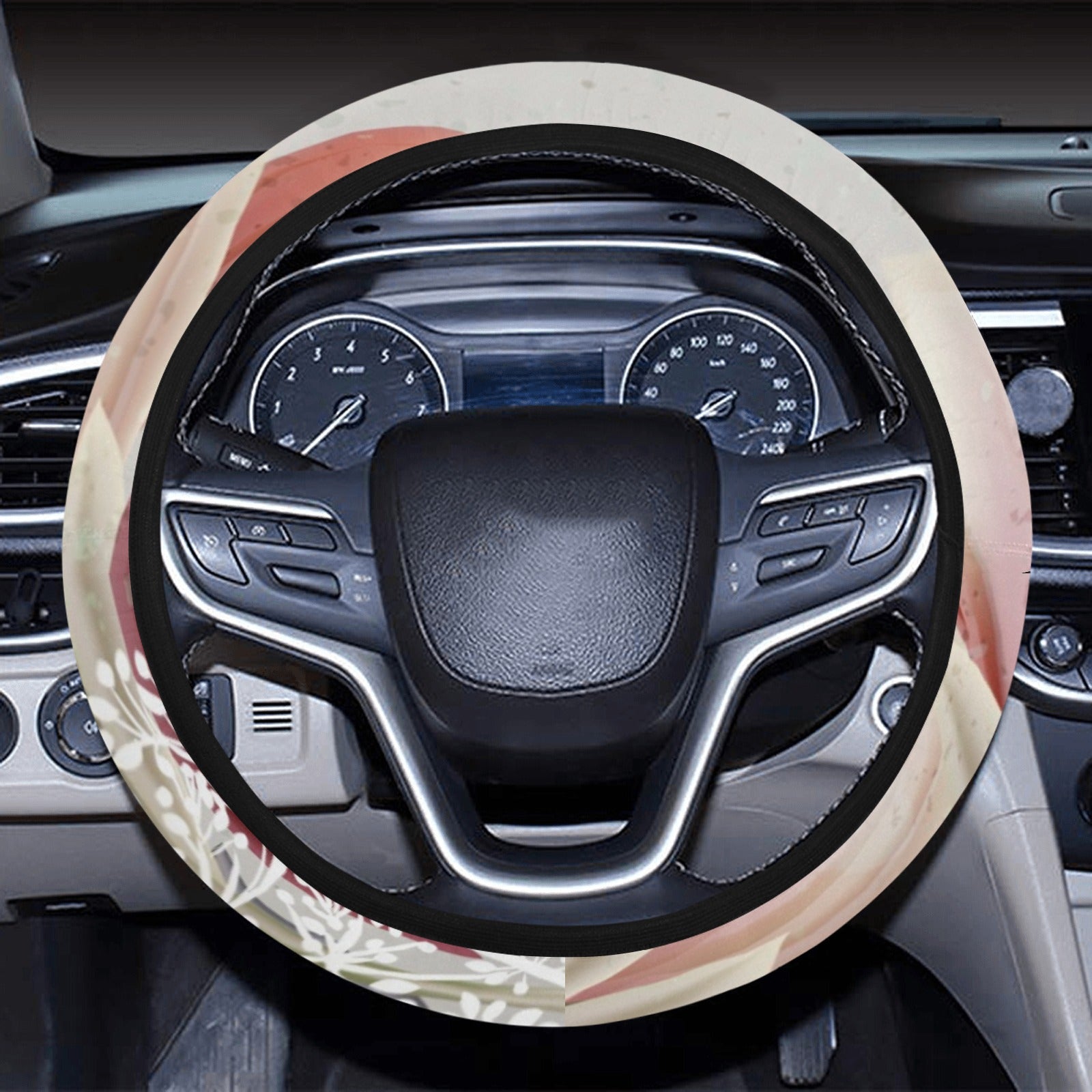 Beige Floral Steering Wheel Cover