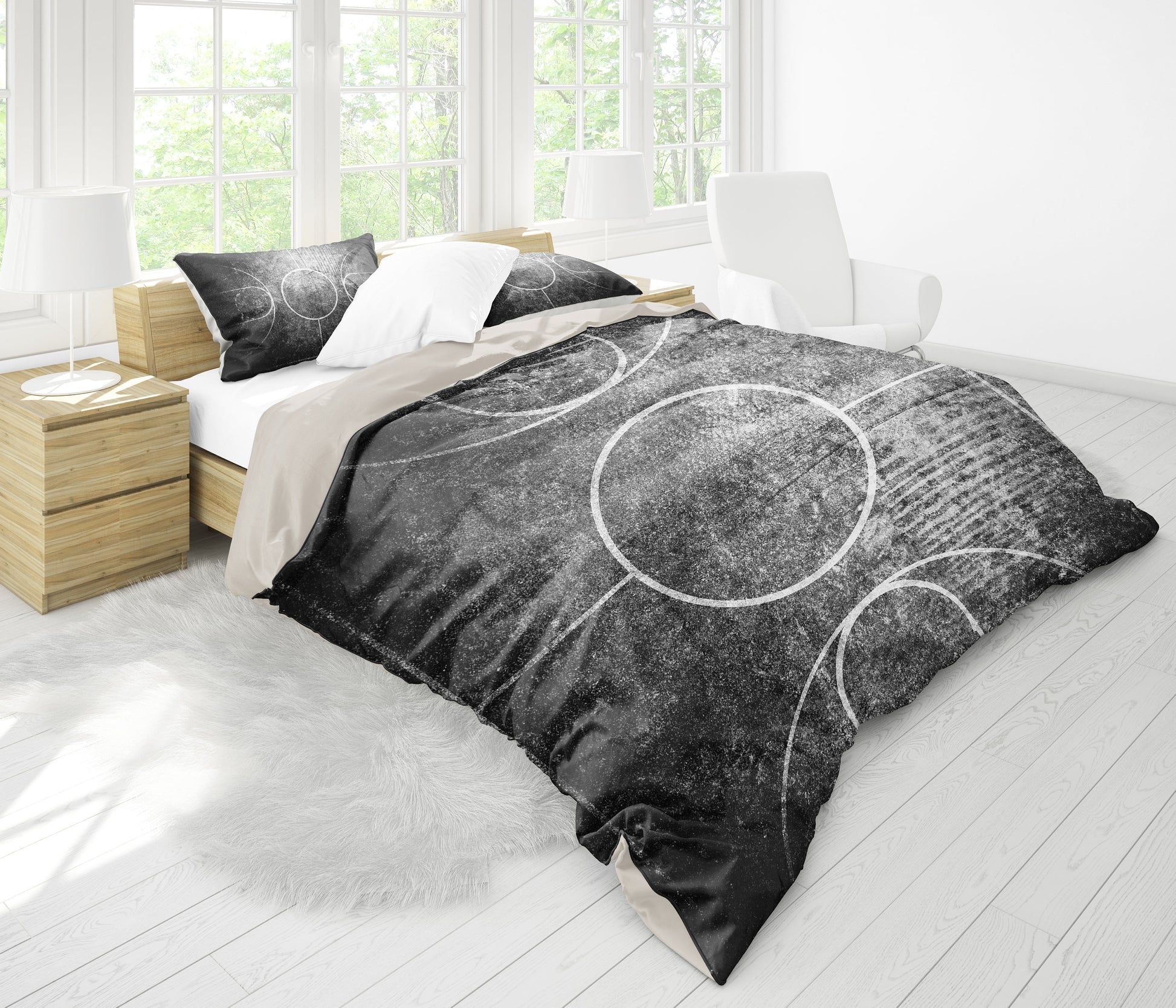 Black & White Grunge Basketball Court Bedding Set
