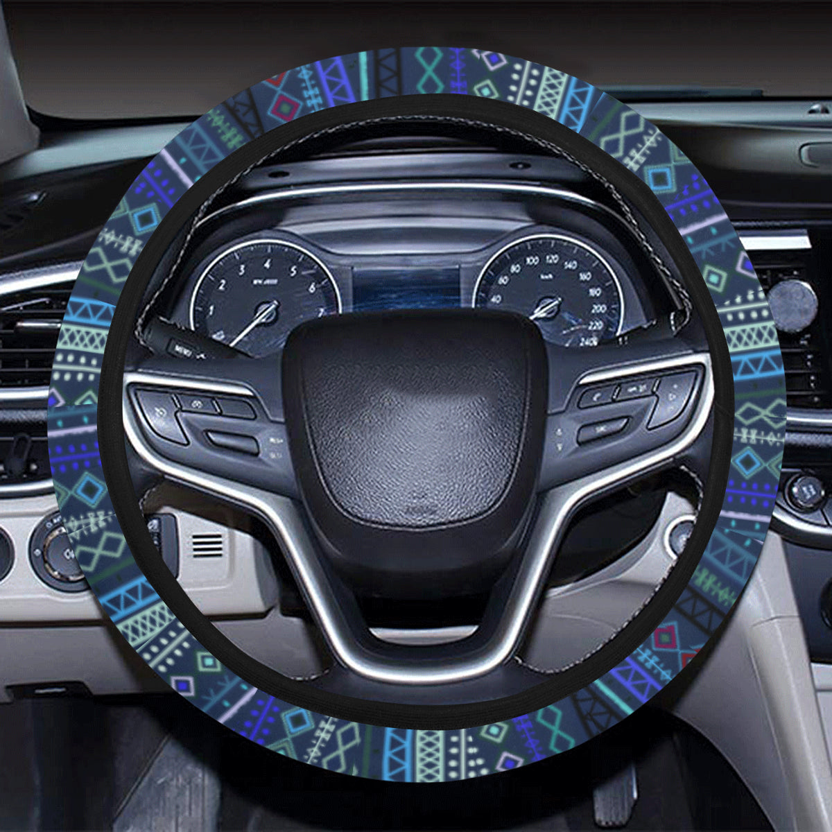 Blue Boho Chic Bohemian Stripes Steering Wheel Cover