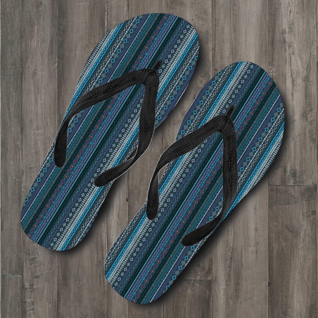 Blue Boho Stripes Decor Flip Flops