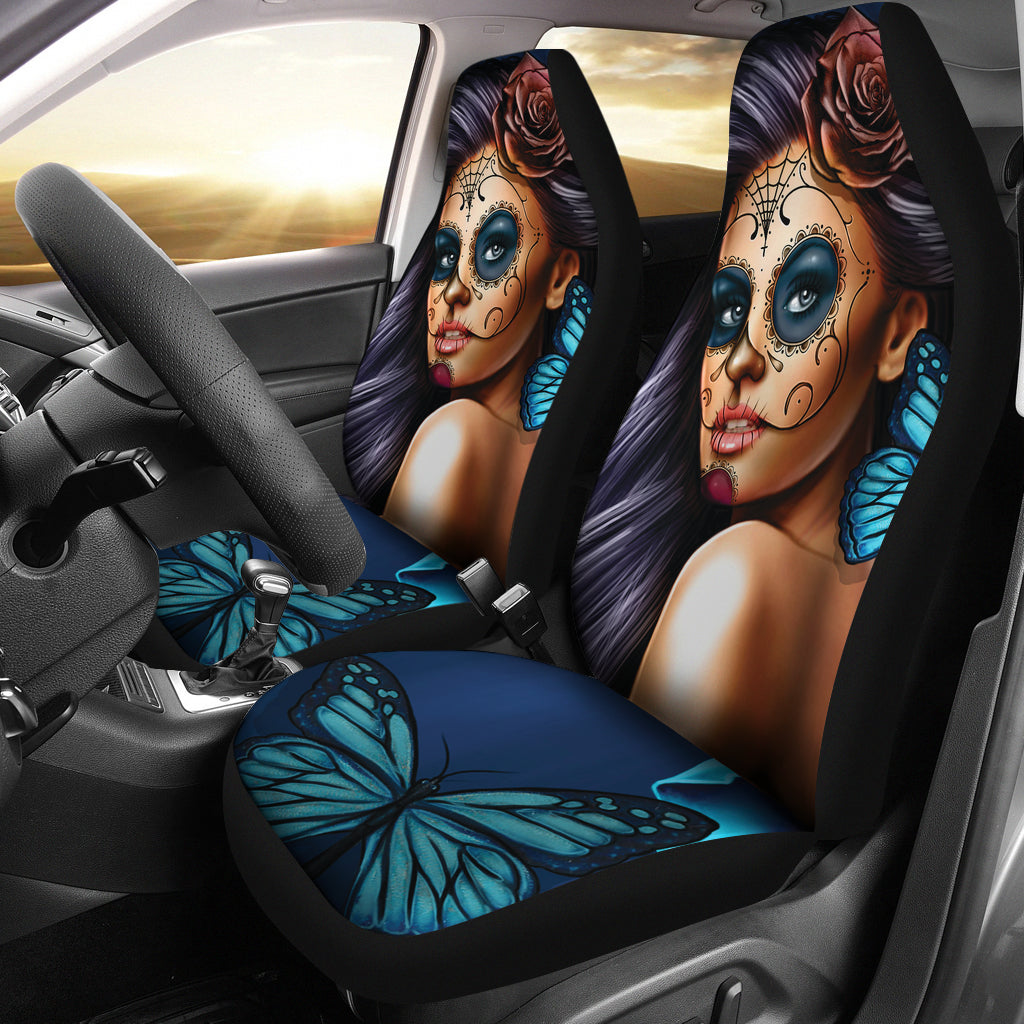Blue Calavera Car Seat Covers