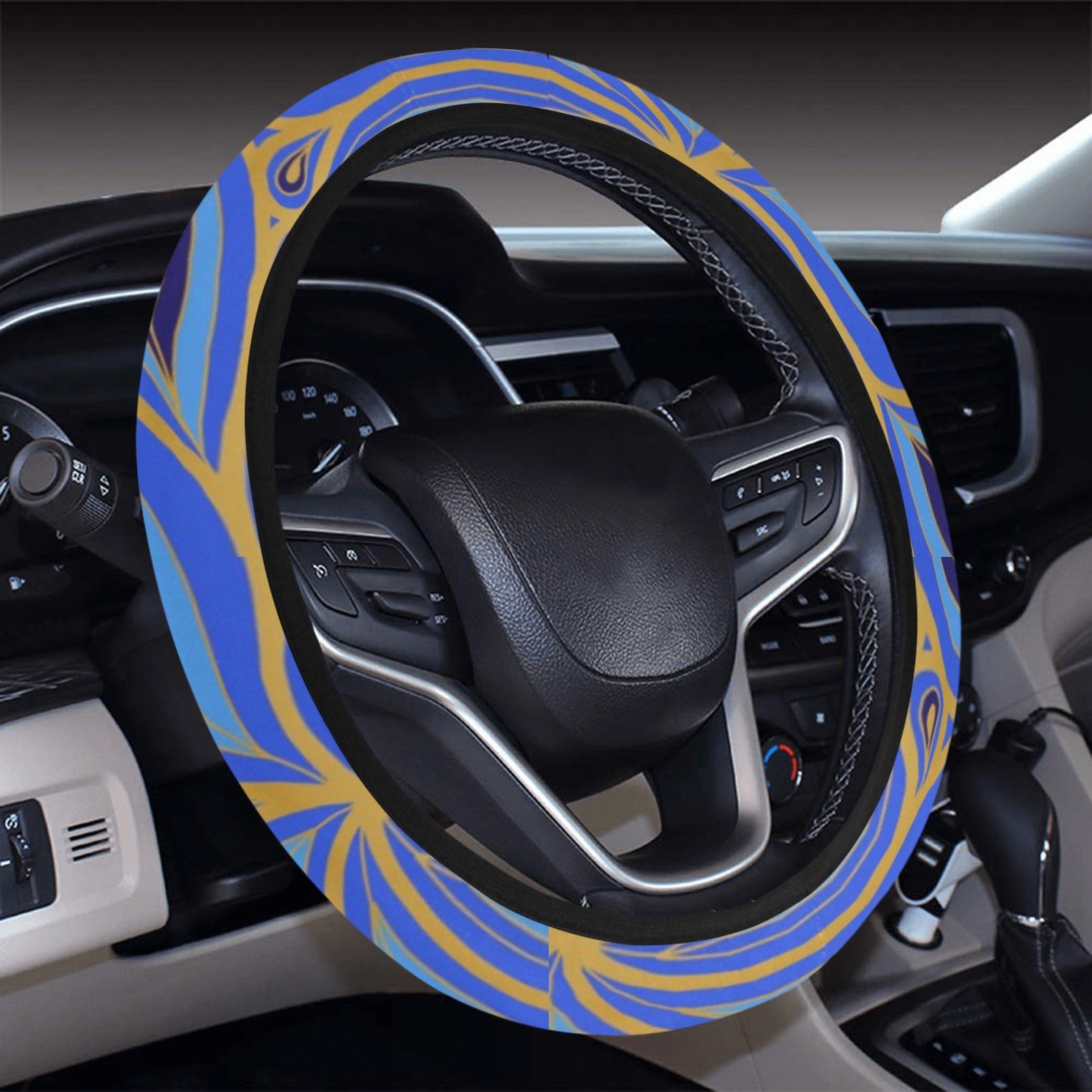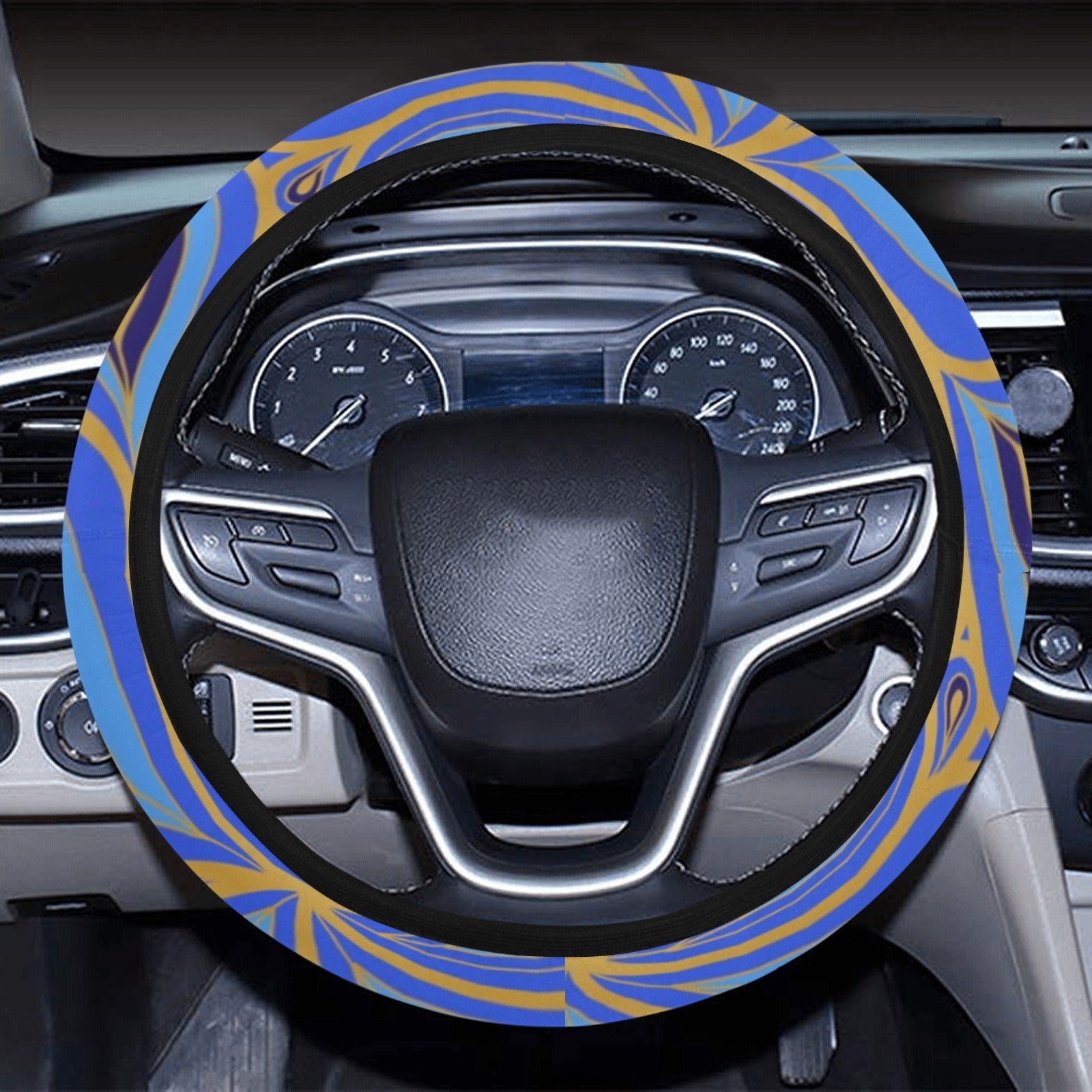 Blue & Gold Decor Steering Wheel Cover