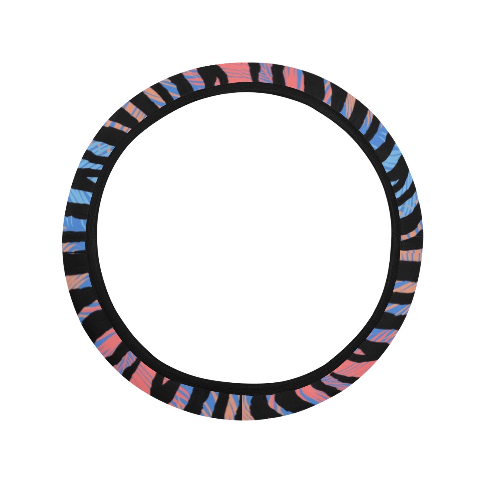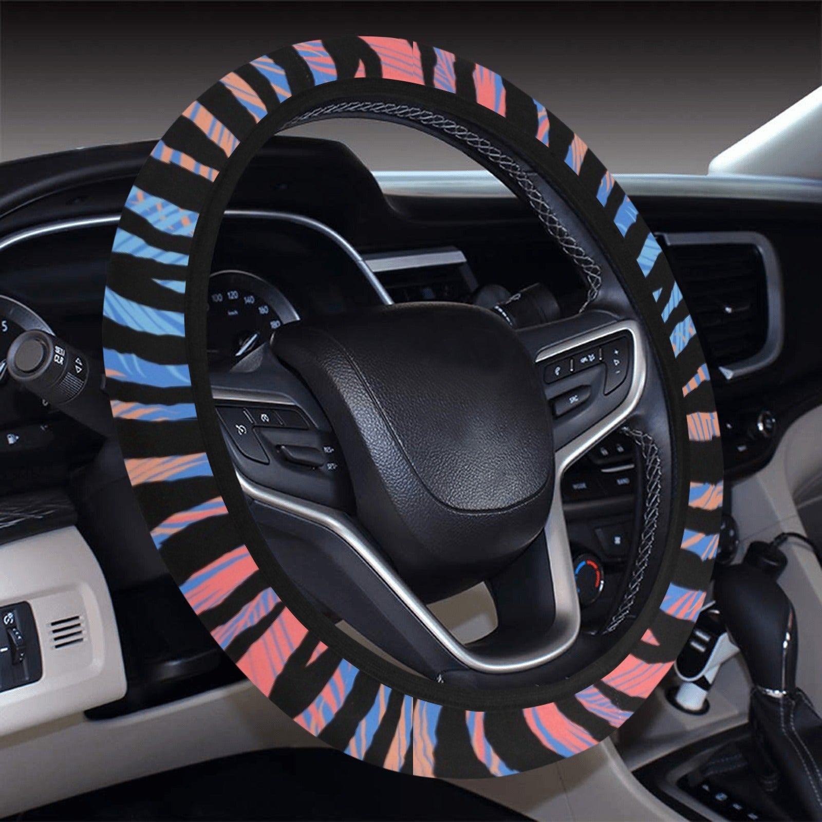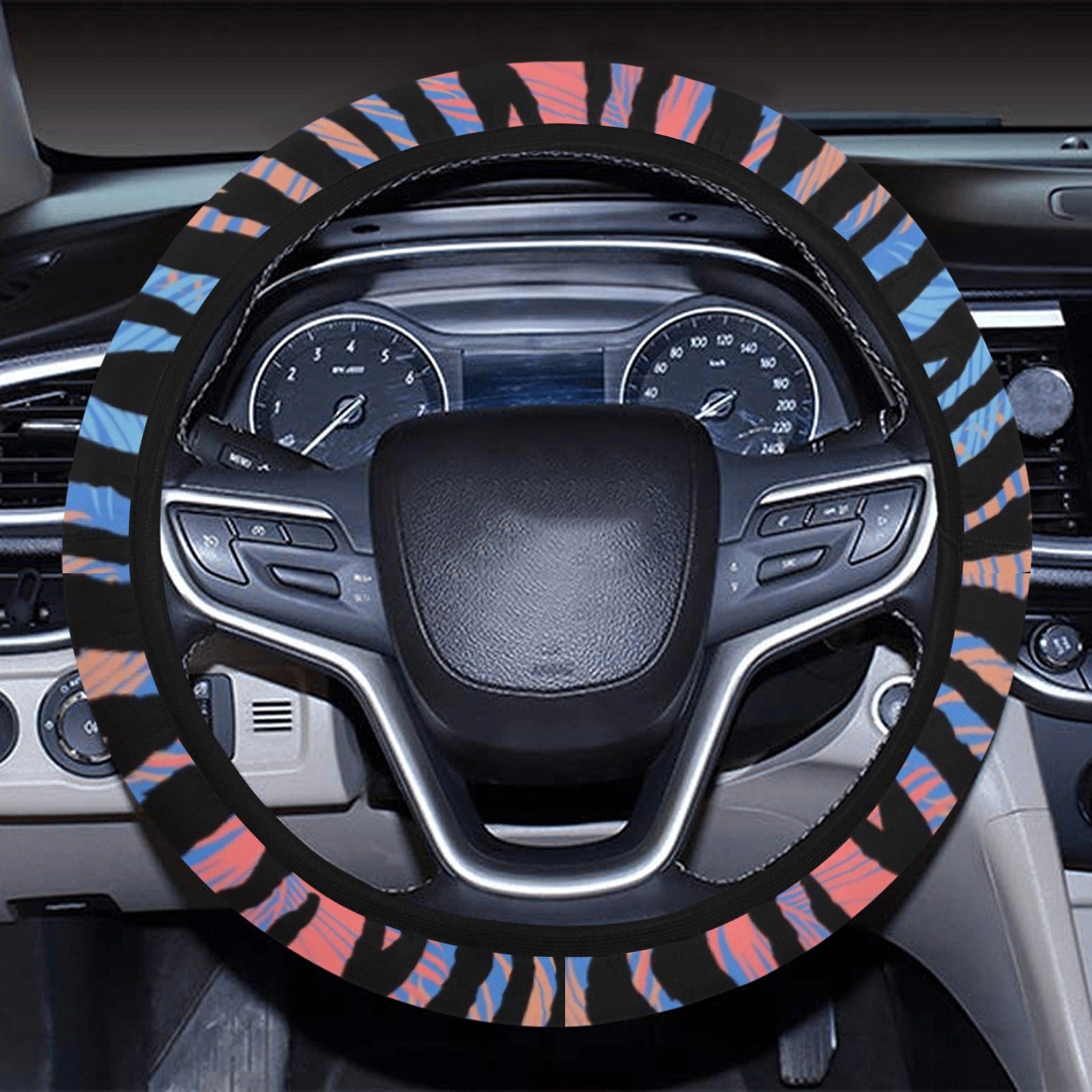 Blue Orange Abstract Stripes Steering Wheel Cover