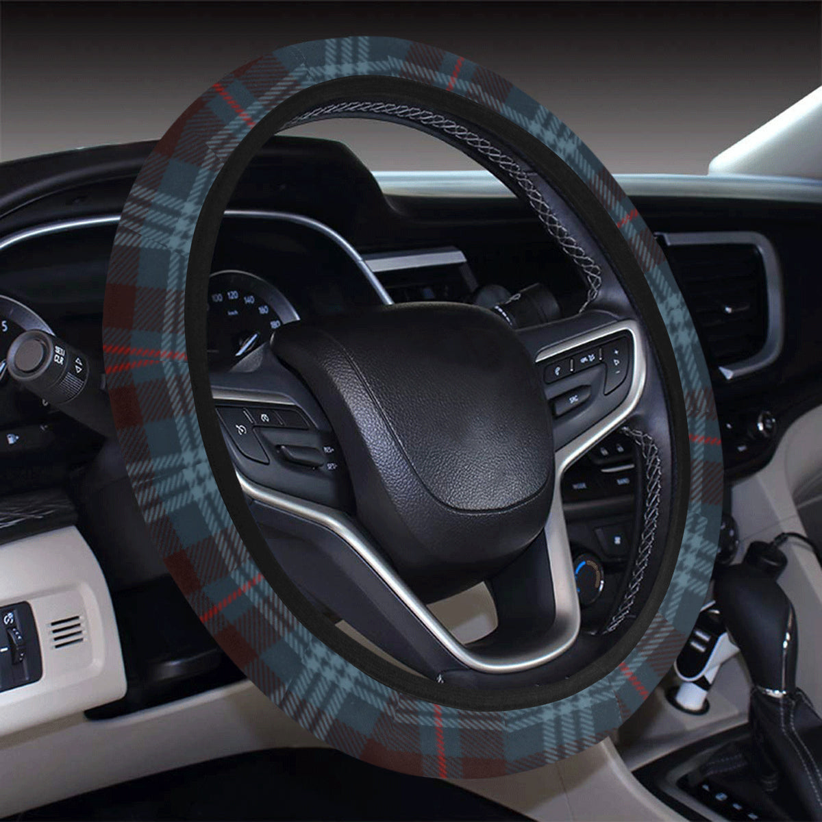 Blue Plaid Steering Wheel Cover