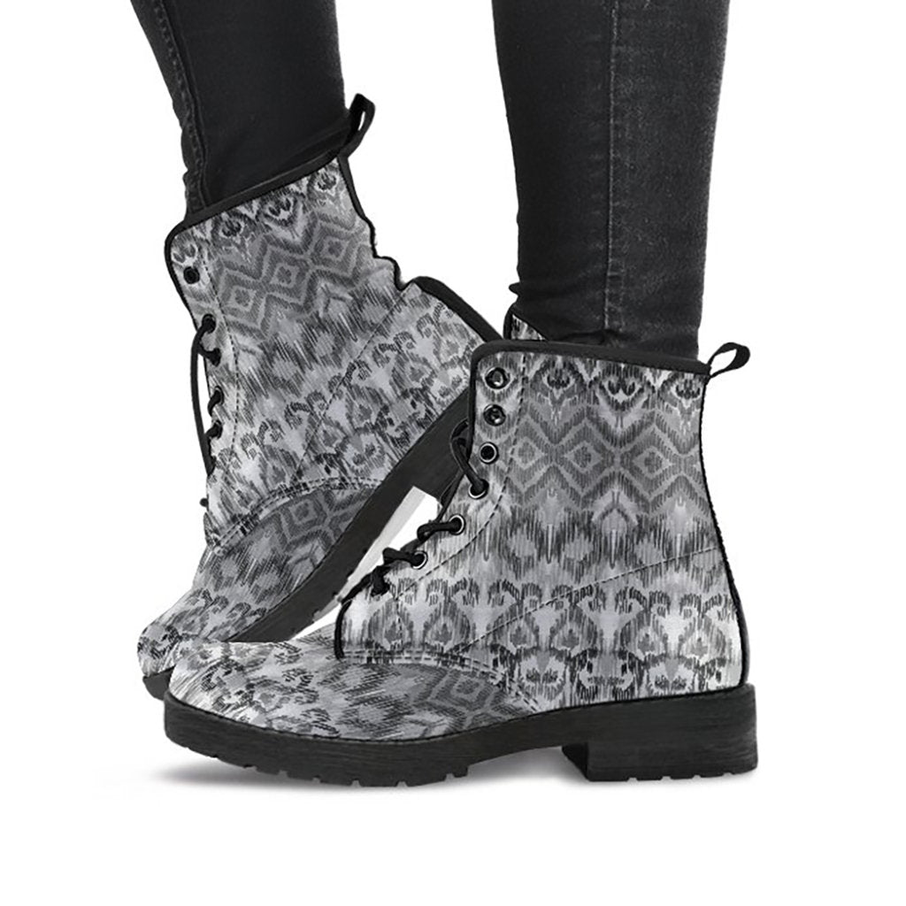 - Made of premium PU leather with a double-sided print and rounded toe construction.