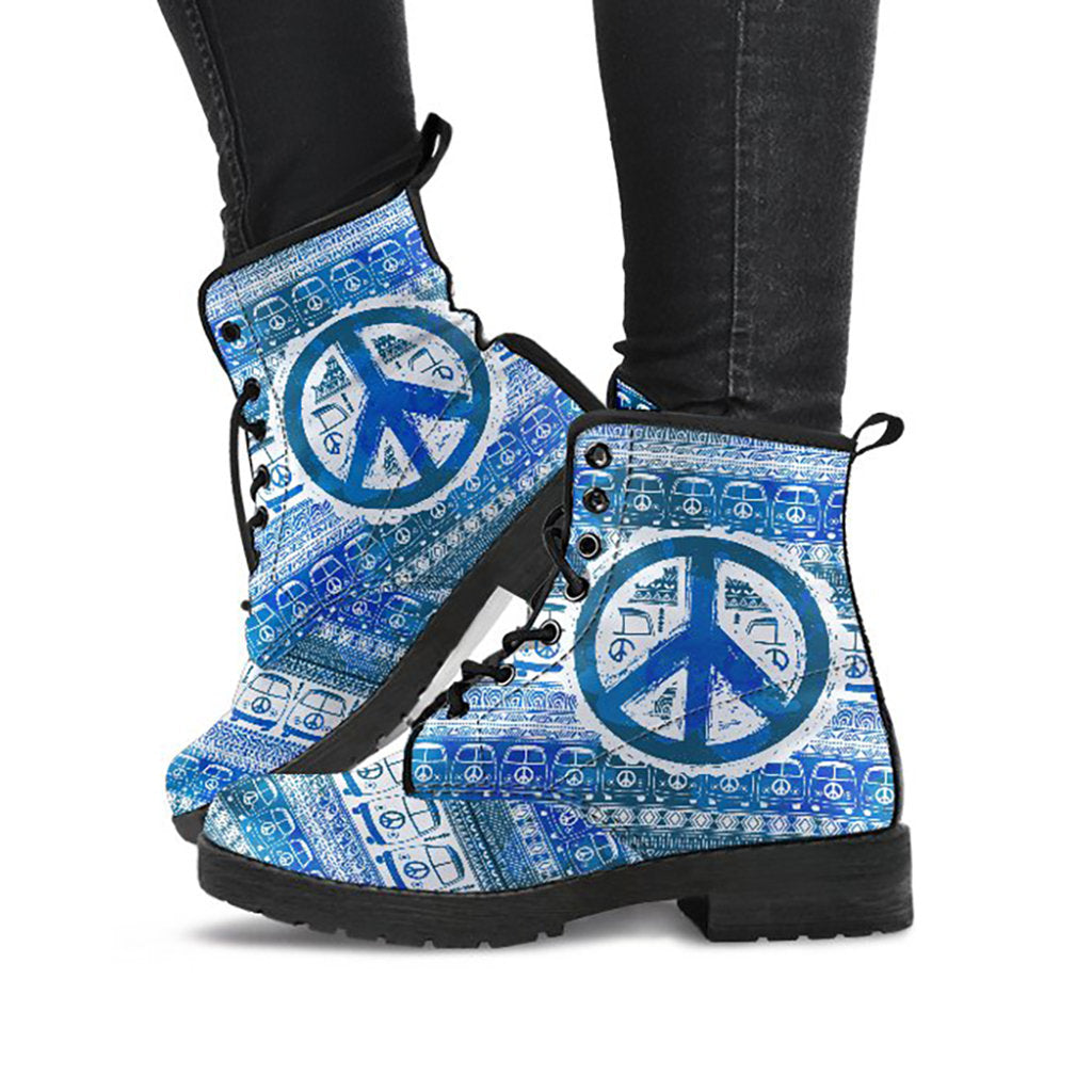 Blue Peace Sign Hippie Womens Boots
