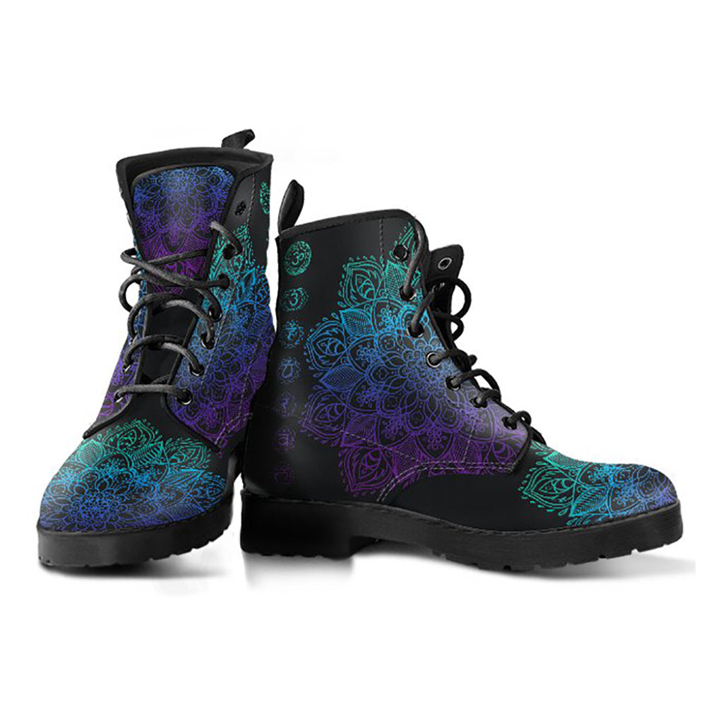 - Made of premium PU leather with a double-sided print and rounded toe construction.