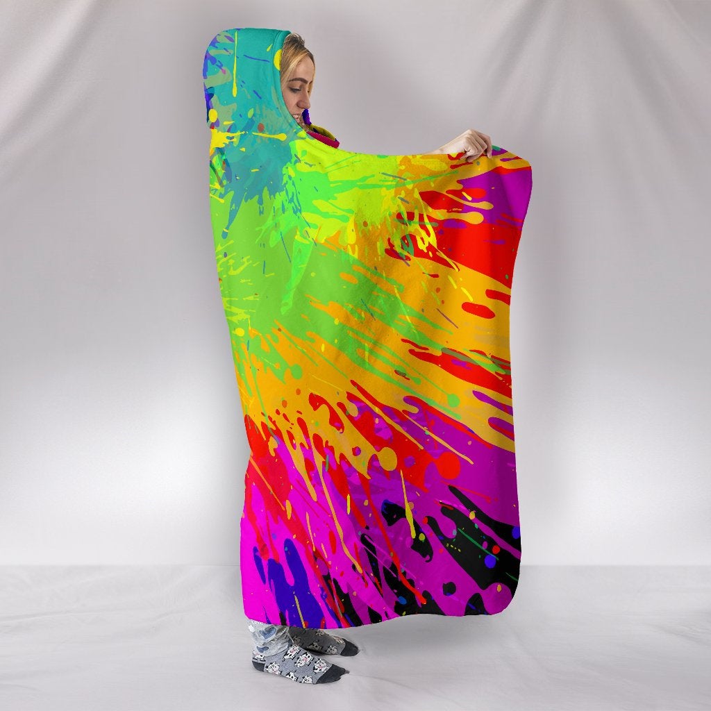 Colorflu Paint Splatter Abstract Art Hooded Blanket