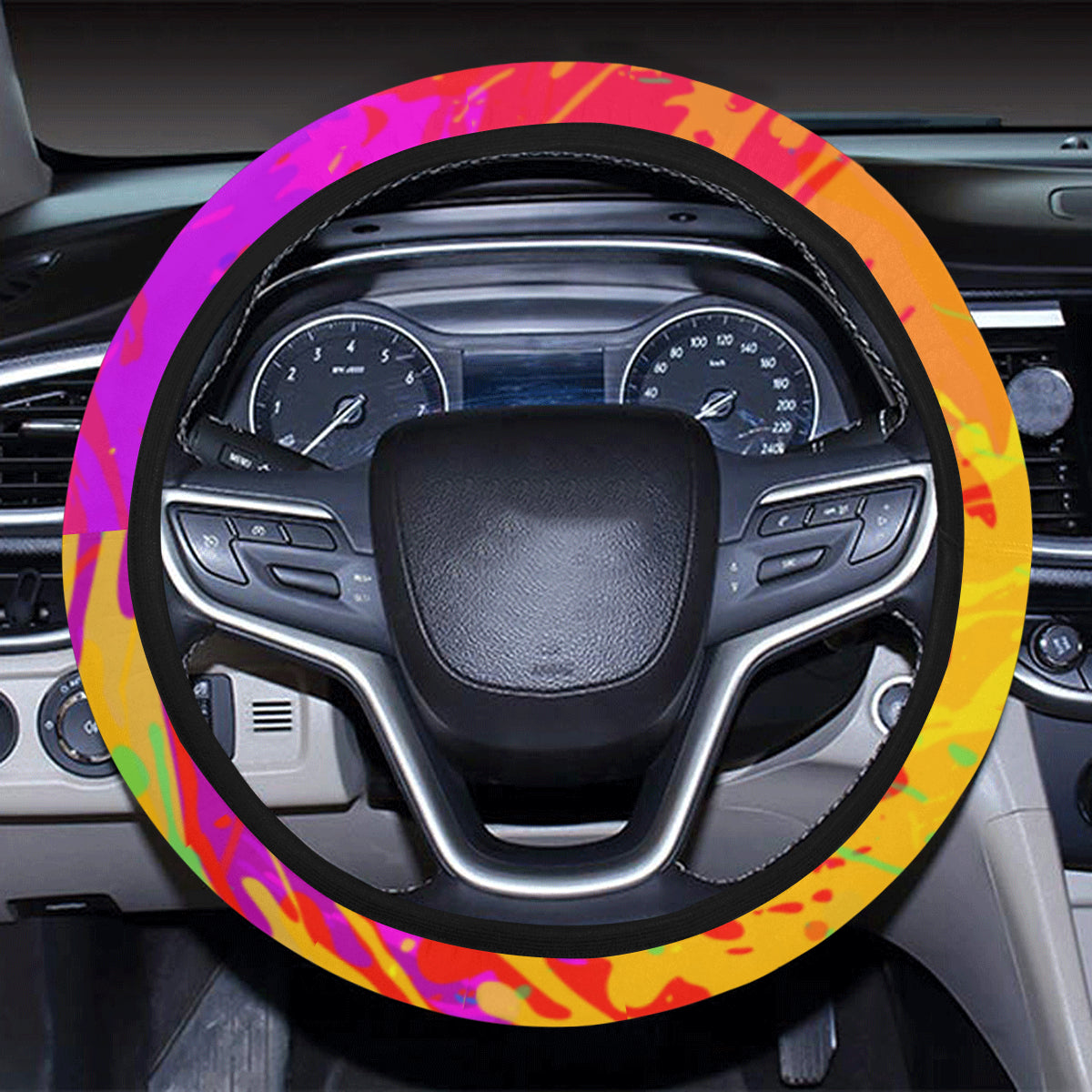 Colorful Paint Splatter Abtract Art Steering Wheel Cover