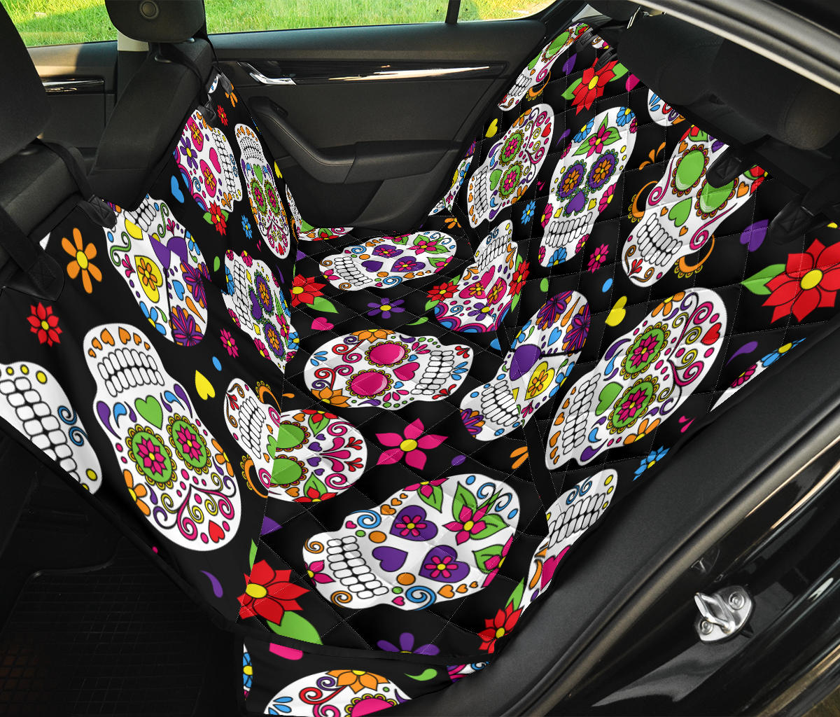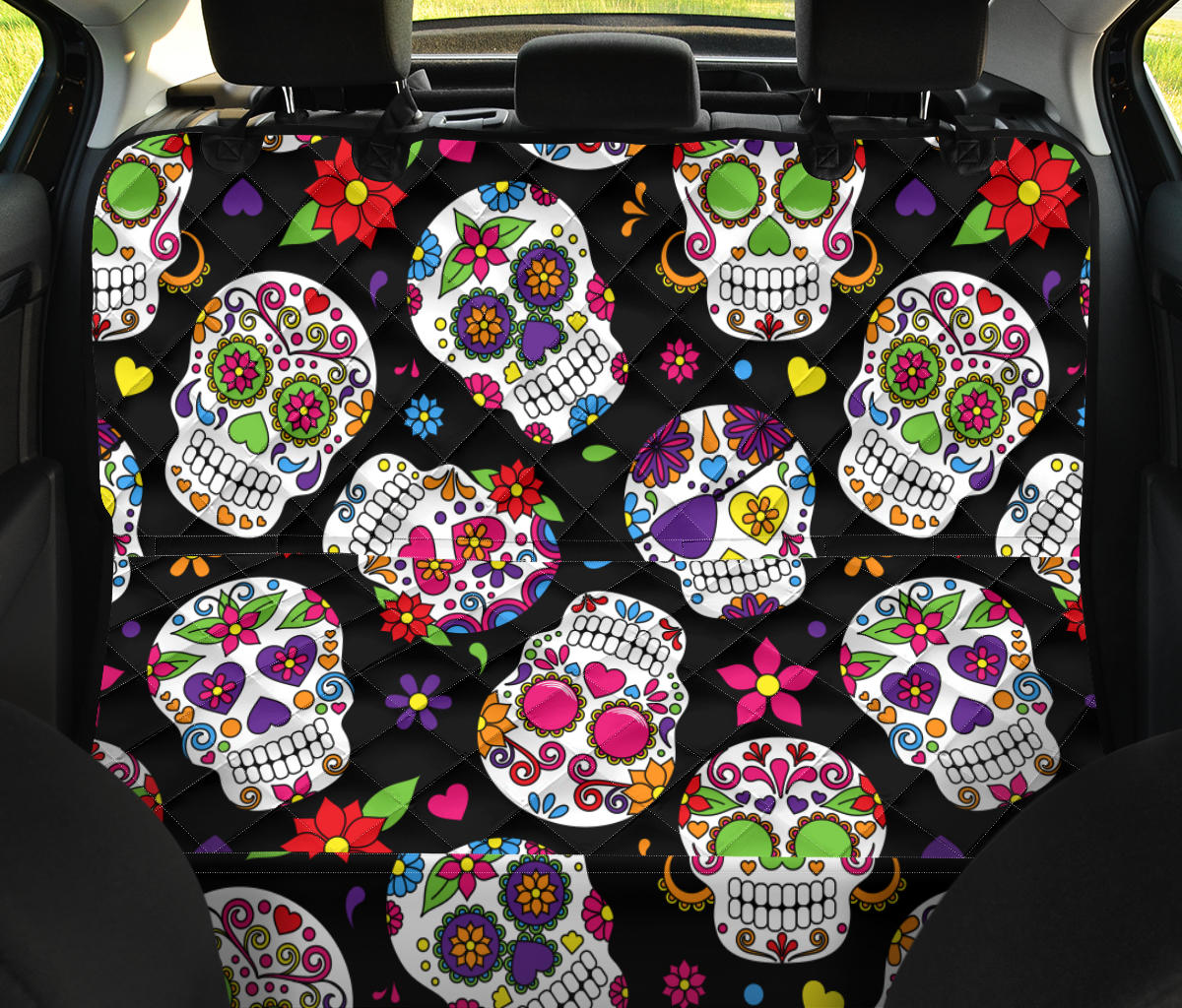 Colorful Sugar Skulls Car Back Seat Pet Cover