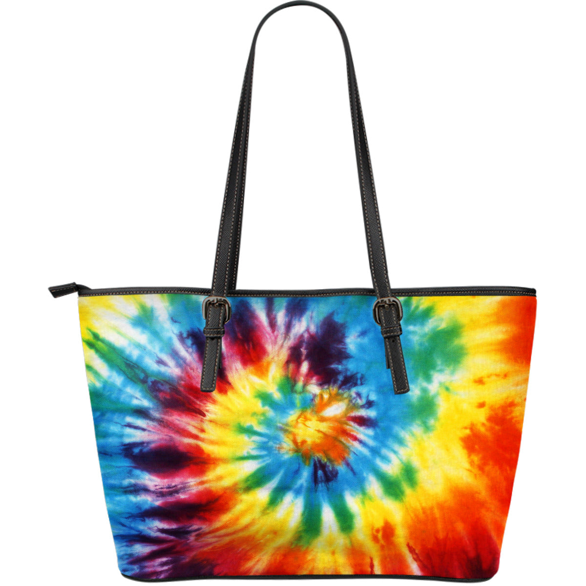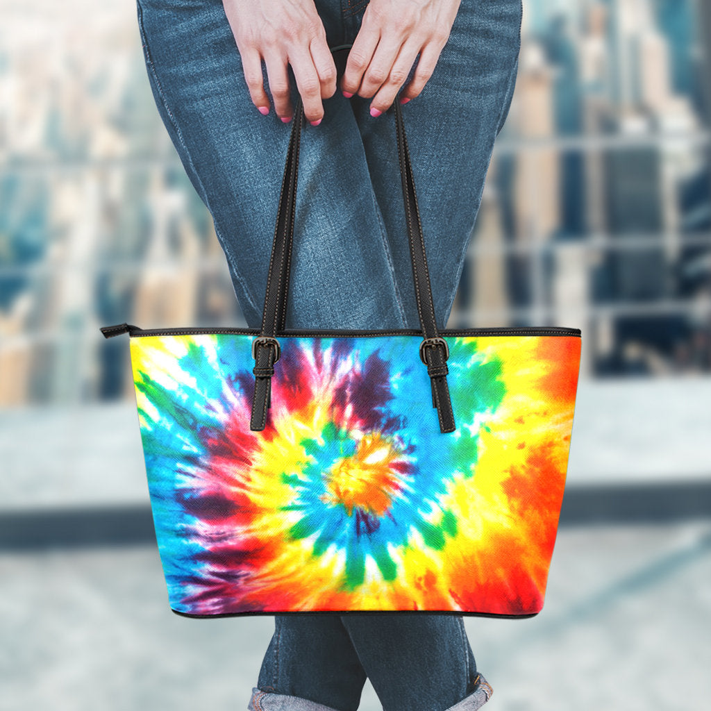 Colorful Tie Dye Abstract Art Leather Tote Bag