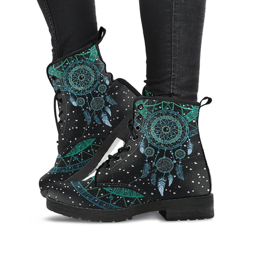 - Made of premium PU leather with a double-sided print and rounded toe construction.