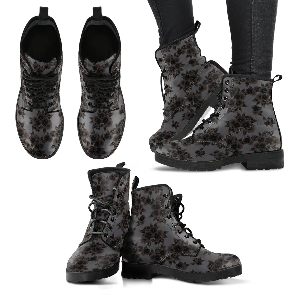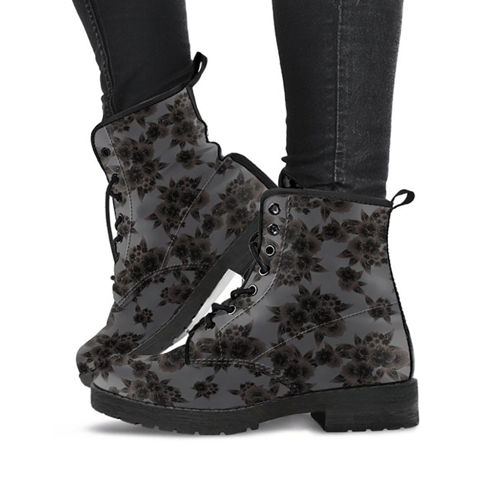 Dark Grey Floral Decor Womens Boots