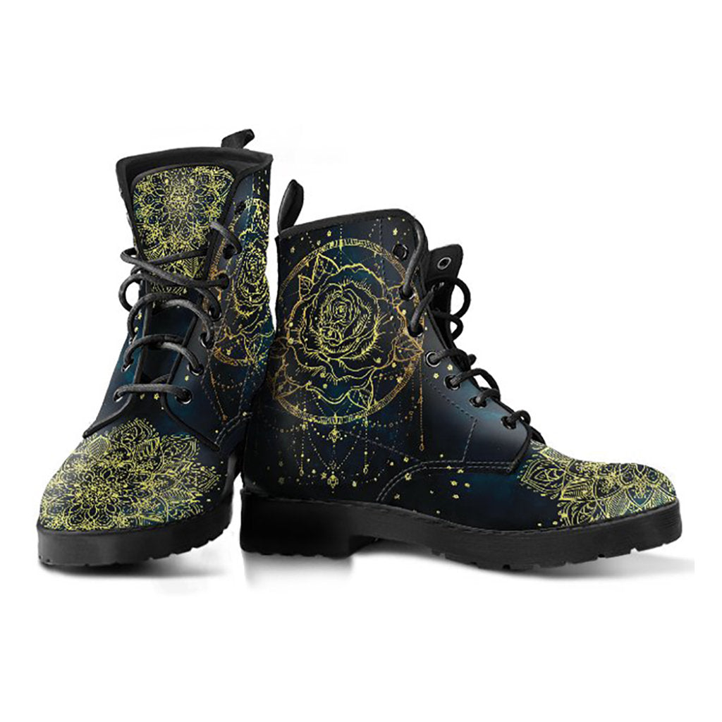 - Made of premium PU leather with a double-sided print and rounded toe construction.