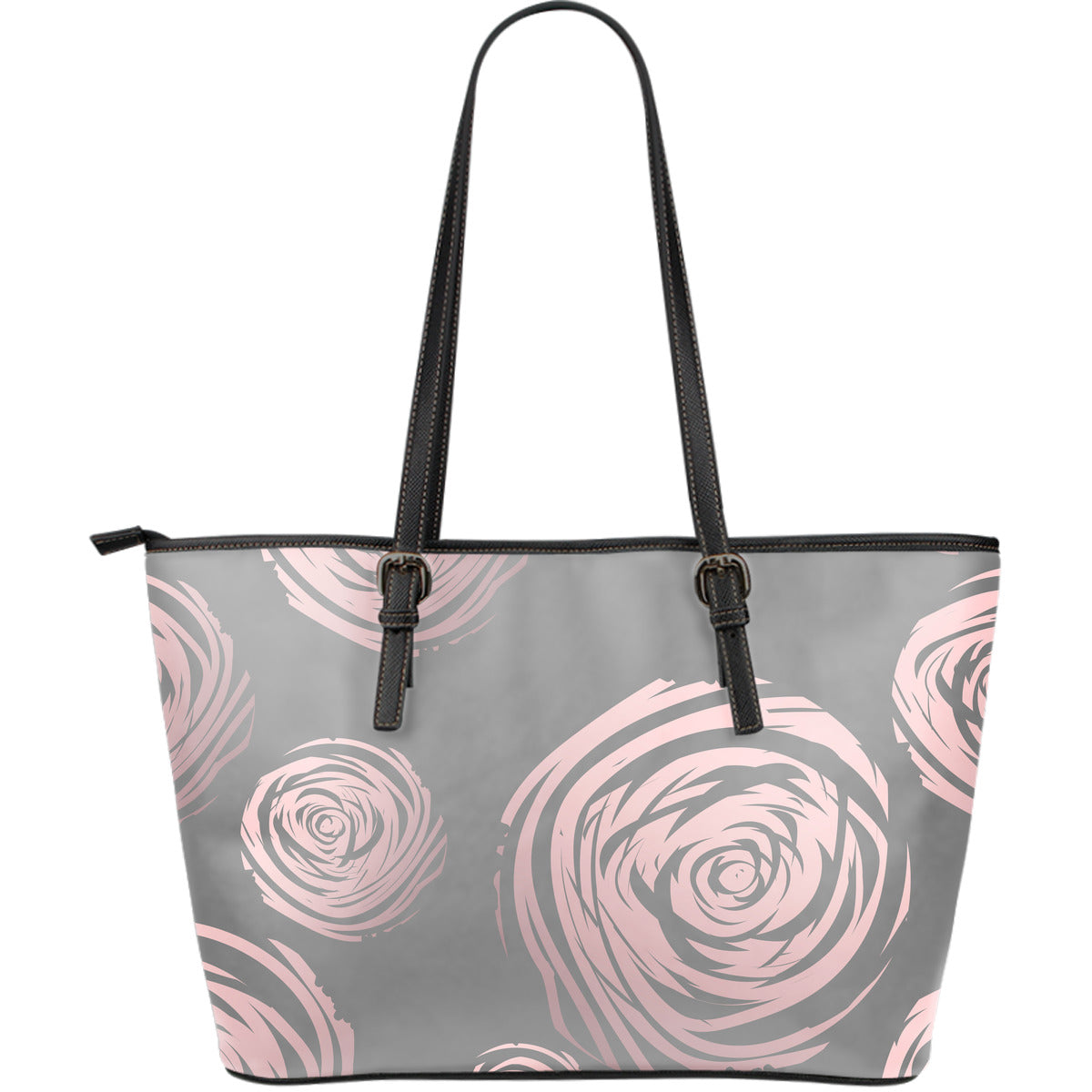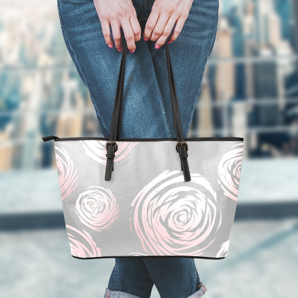 Grey Abstract Spirals Leather Tote Bag