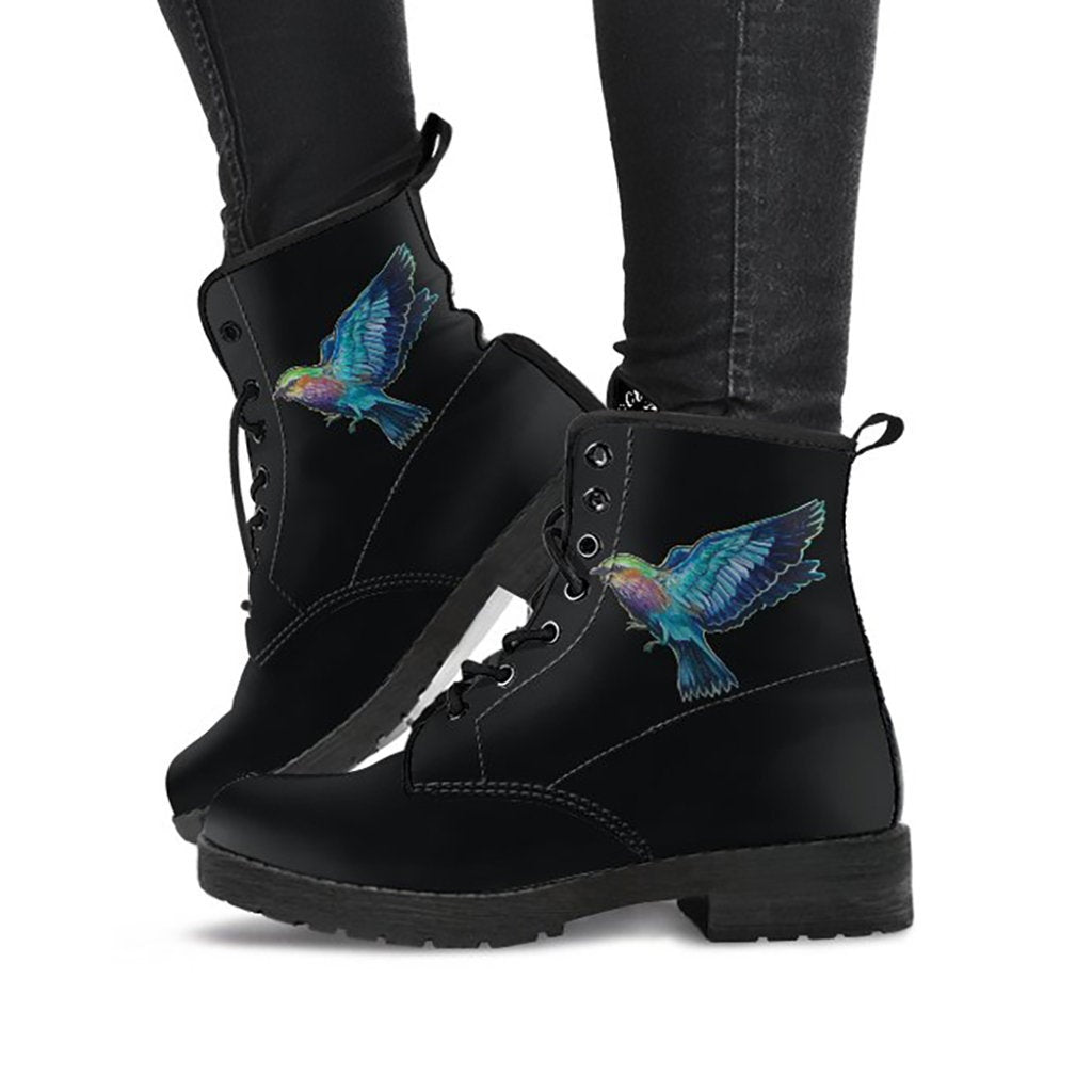 - Made of premium PU leather with a double-sided print and rounded toe construction.