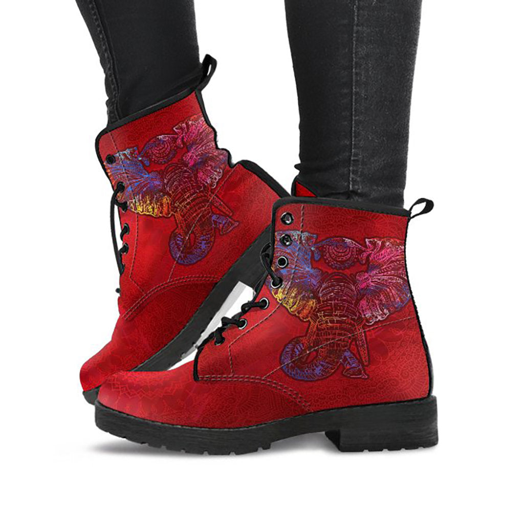 - Made of premium PU leather with a double-sided print and rounded toe construction.