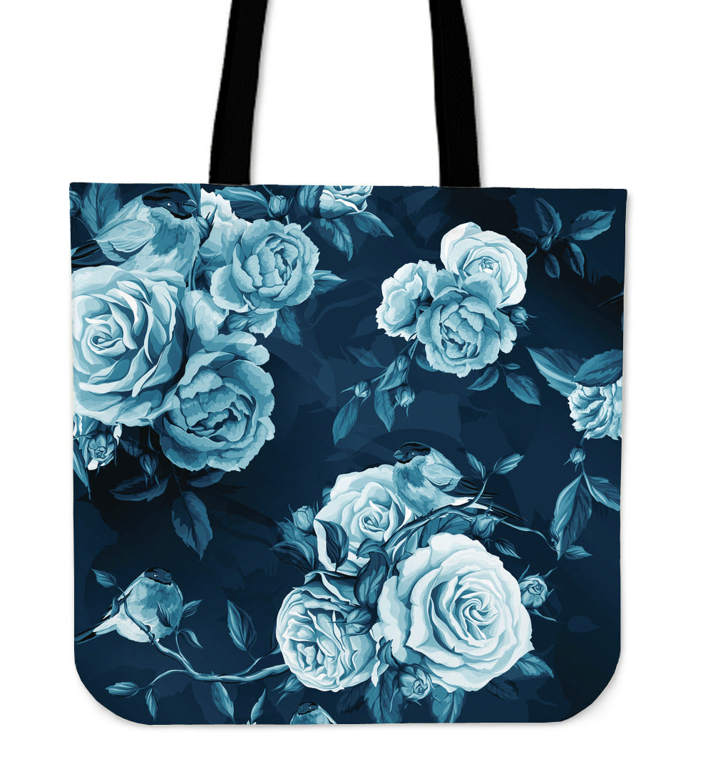 Navy Blue Roses Canvas Tote Bag