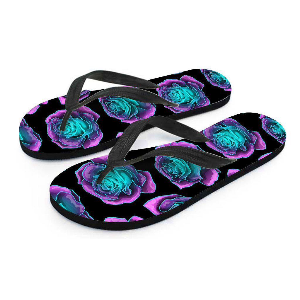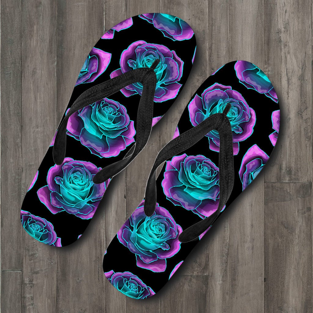 Neon Pink Roses Flip Flops