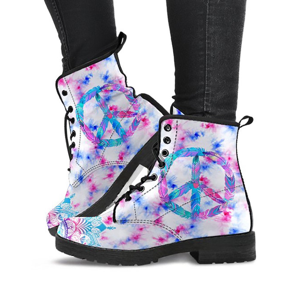 Pink Abstract Peace Sign Womens Boots
