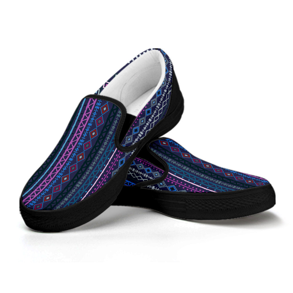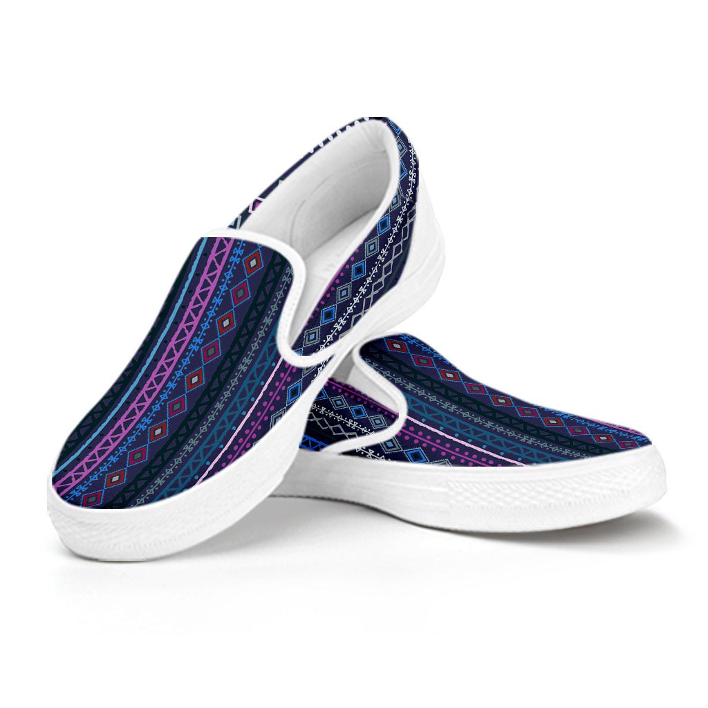 Purple Boho Chic Bohemian Stripes Slip On Shoes CL