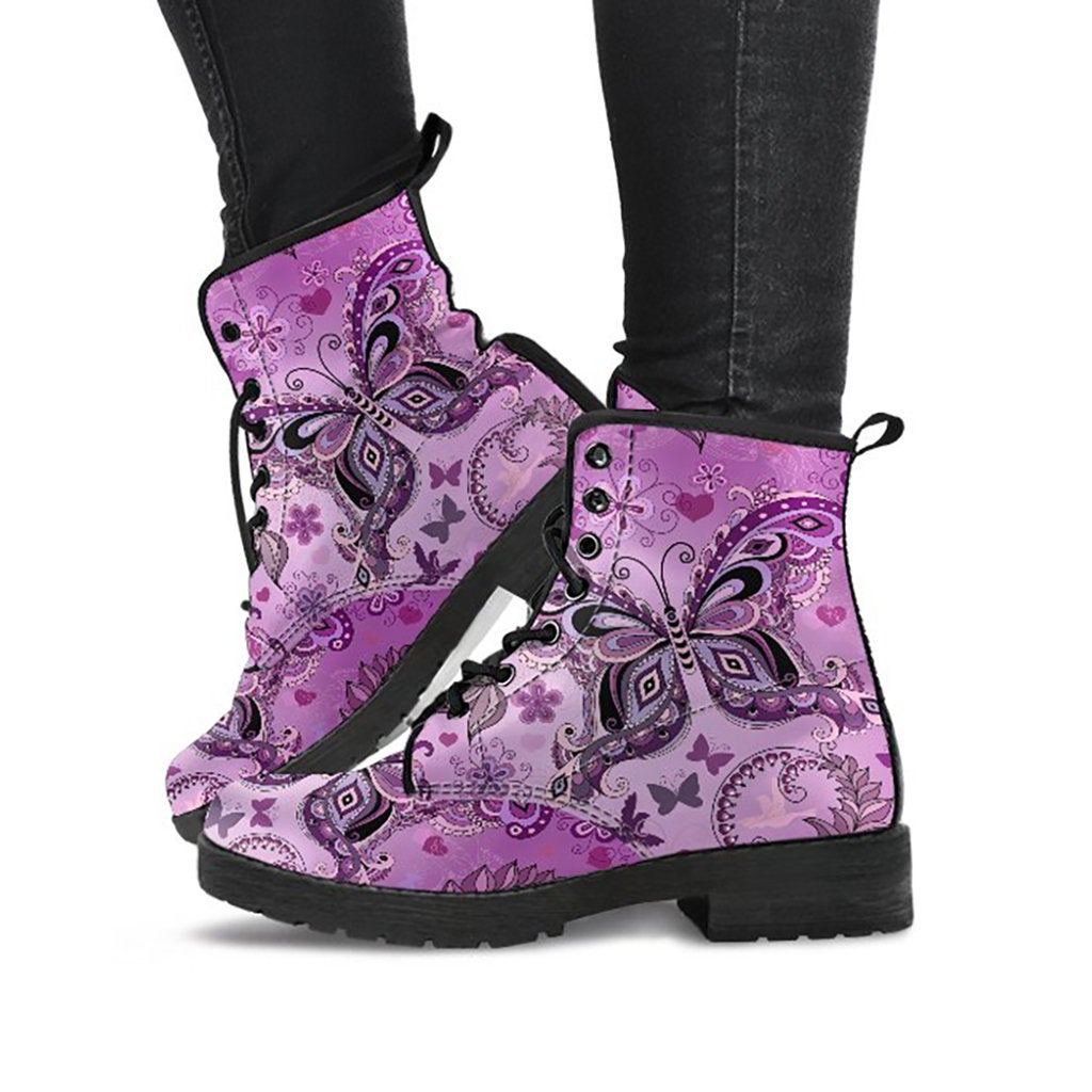 - Made of premium PU leather with a double-sided print and rounded toe construction.