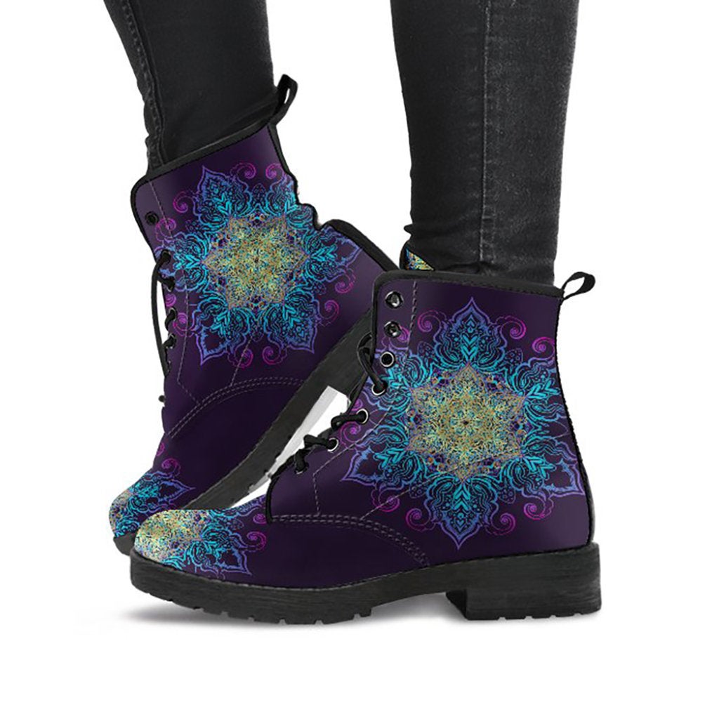 - Made of premium PU leather with a double-sided print and rounded toe construction.