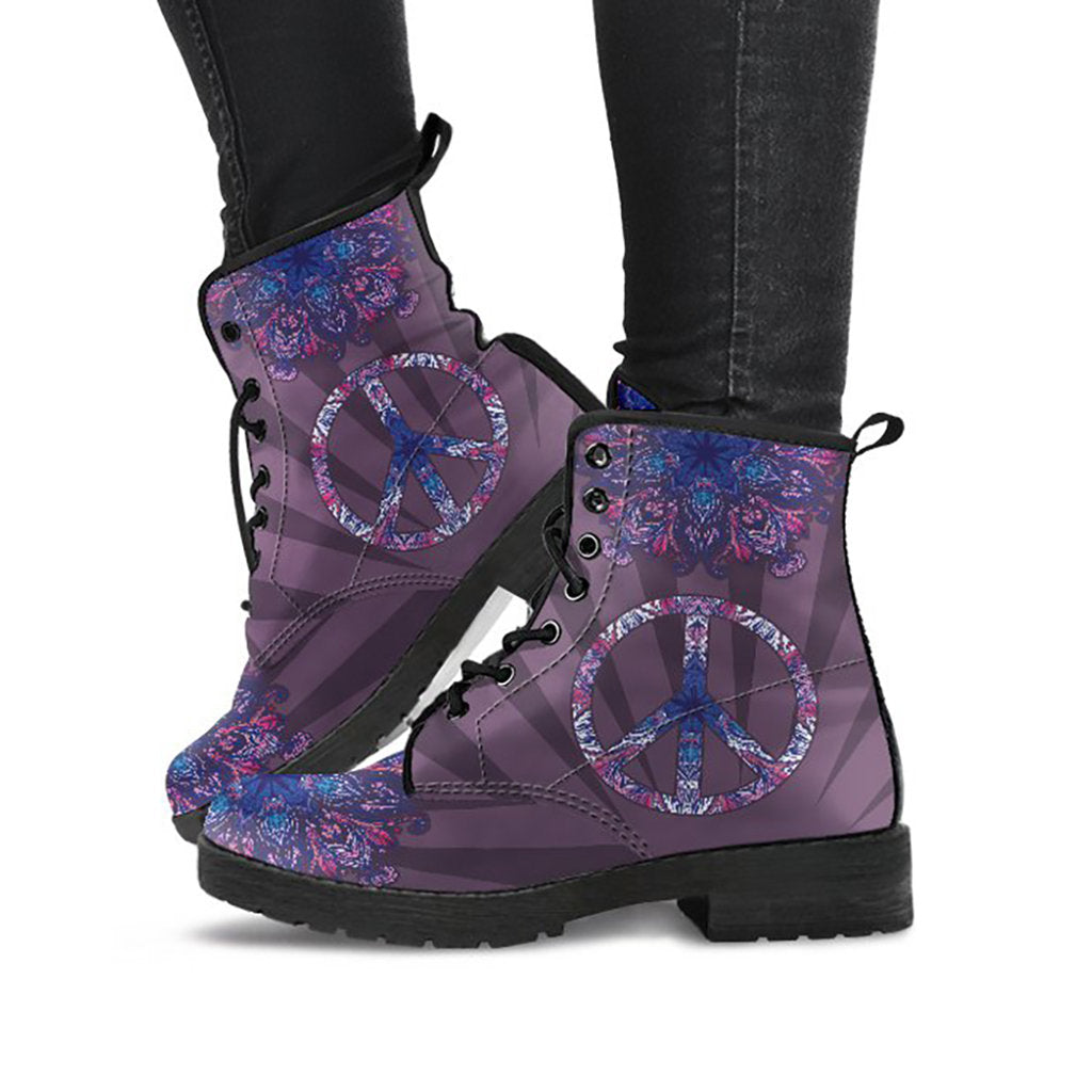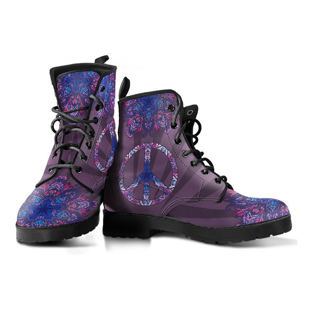 - Made of premium PU leather with a double-sided print and rounded toe construction.