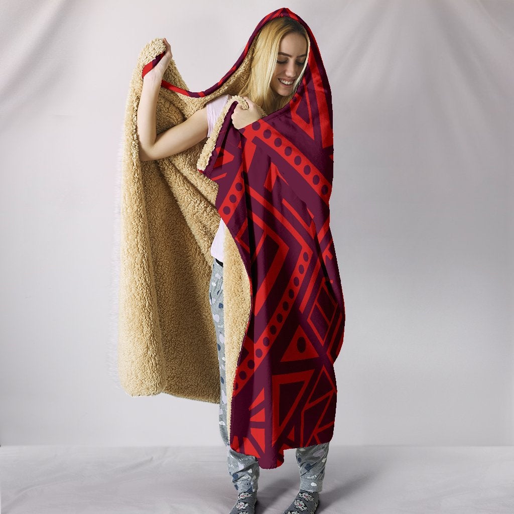 Red Tribal Polynesian Hooded Blanket