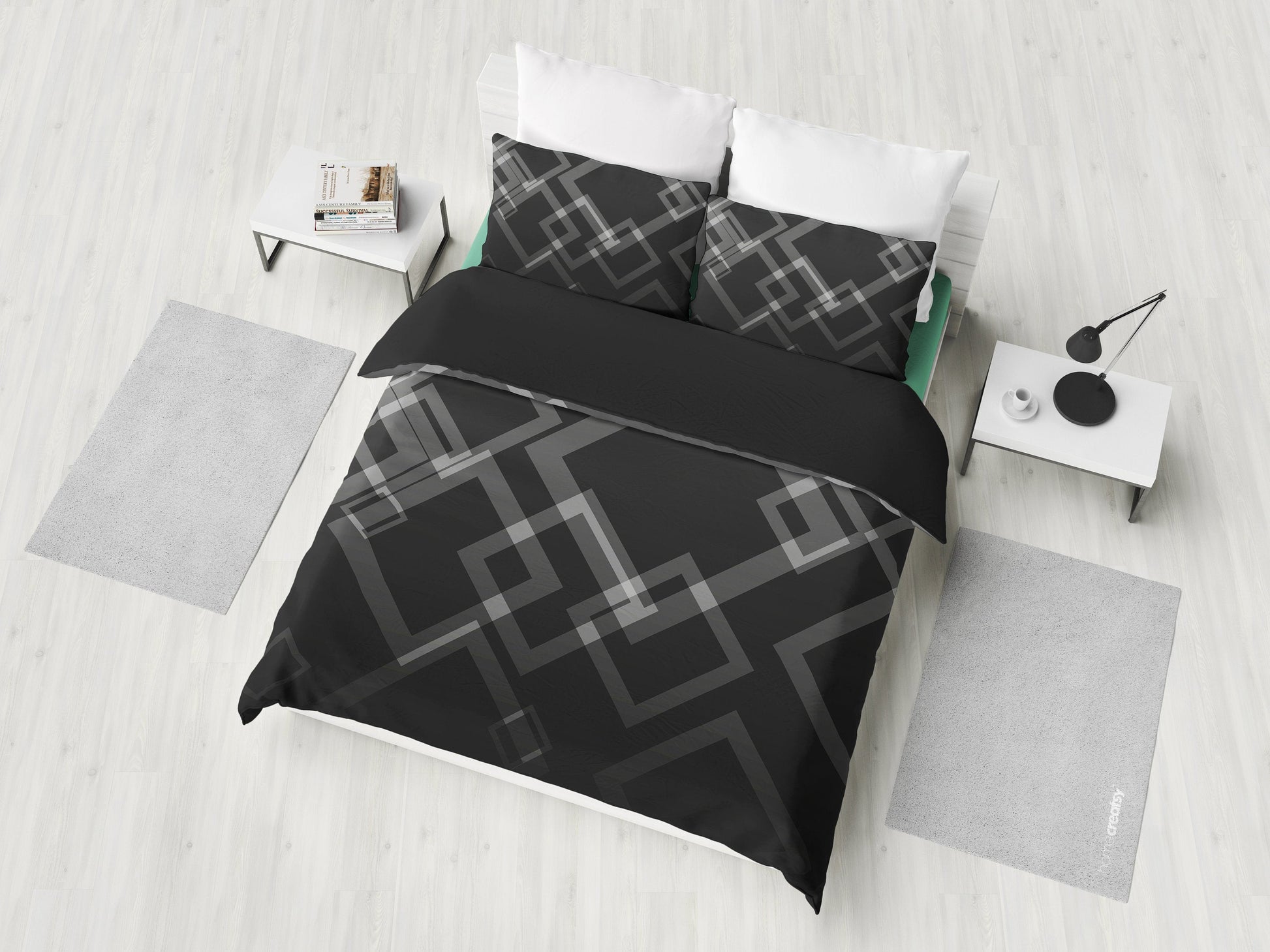 Dark Grey Abstract Squares Bedding Set