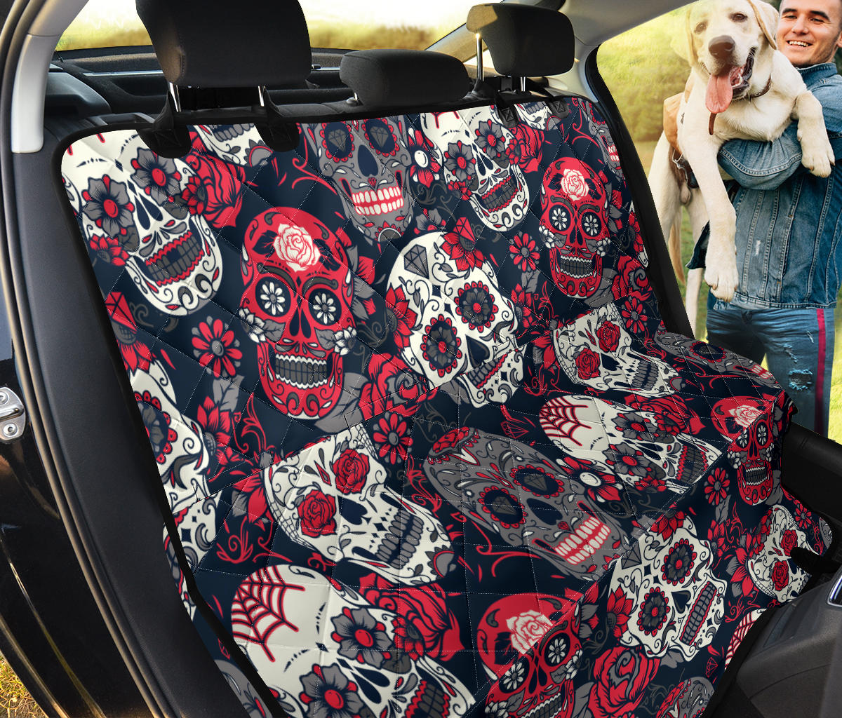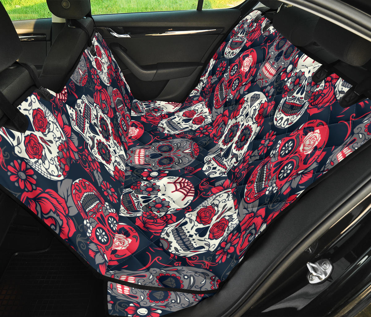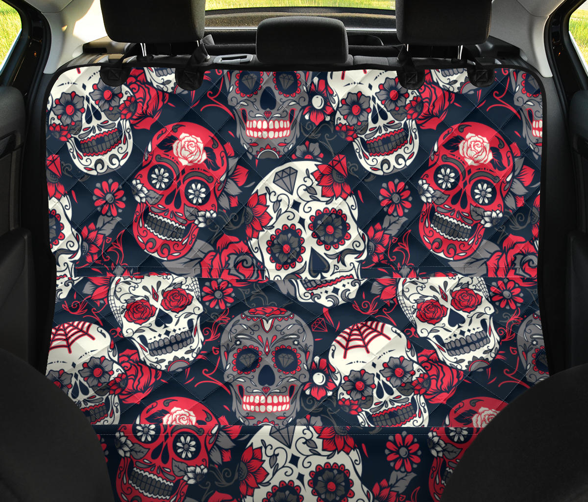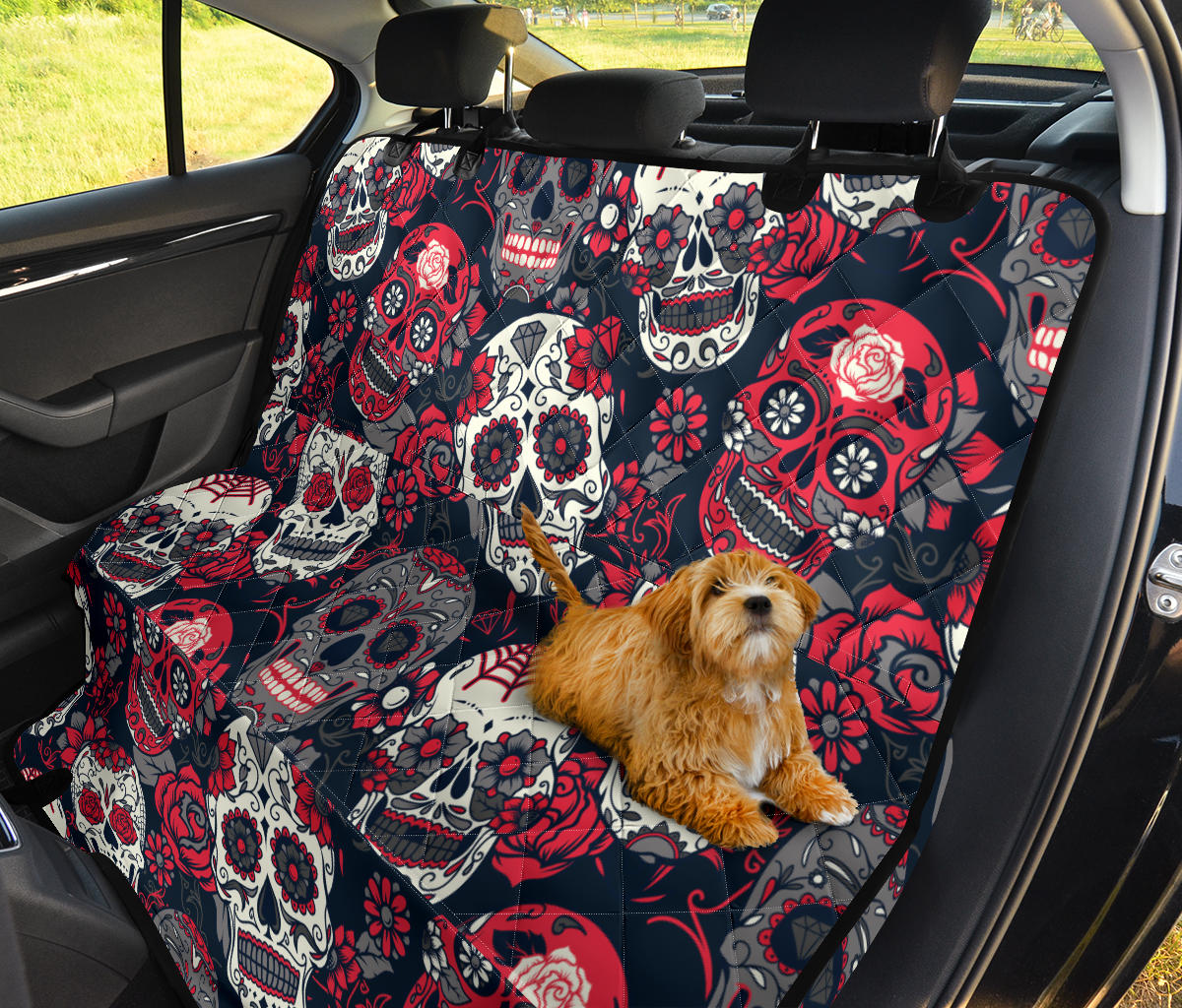Sugar Skulls & Roses Car Back Seat Pet Cover