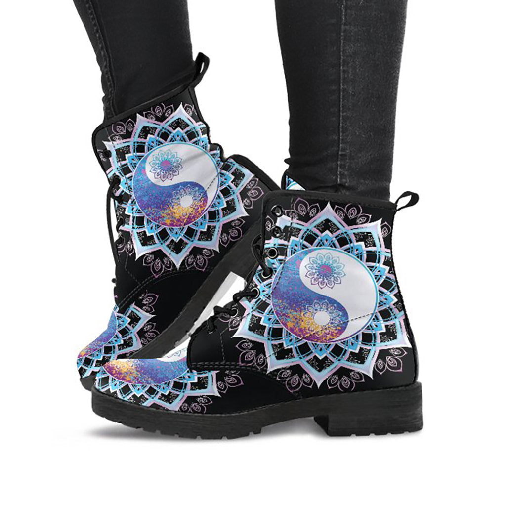- Made of premium PU leather with a double-sided print and rounded toe construction.